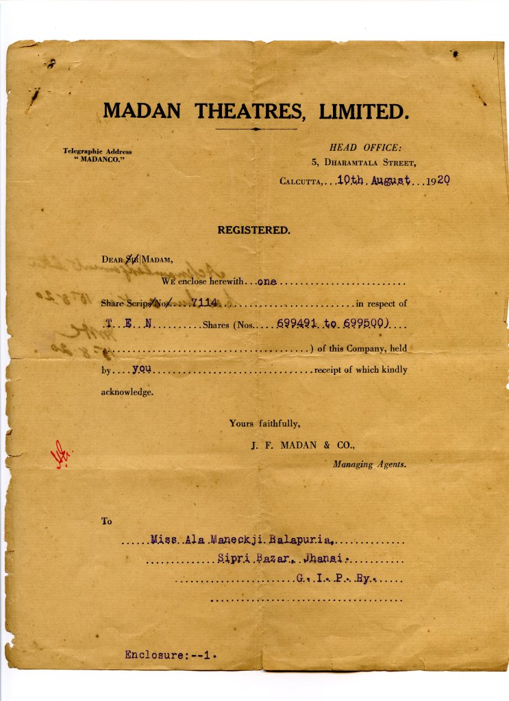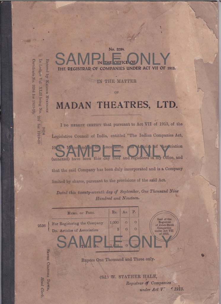 Madan Theatres – Registrar of Companies. Image Courtesy: Gool Madan Ardeshir. All Rights Reserved