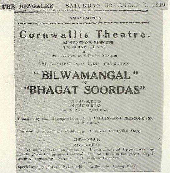 Public Hall (later Empire Theatre) newspaper advert. Image Courtesy: Dr Vilasnee Tampoe-Hautin Newspaper advert for Ben Hur at the Elphinstone Picture Palace (1928)Poster from J F Madan’s exhibiting space, the Elphinstone Bioscope (1919) (Scan by Jayanta Nath)