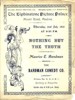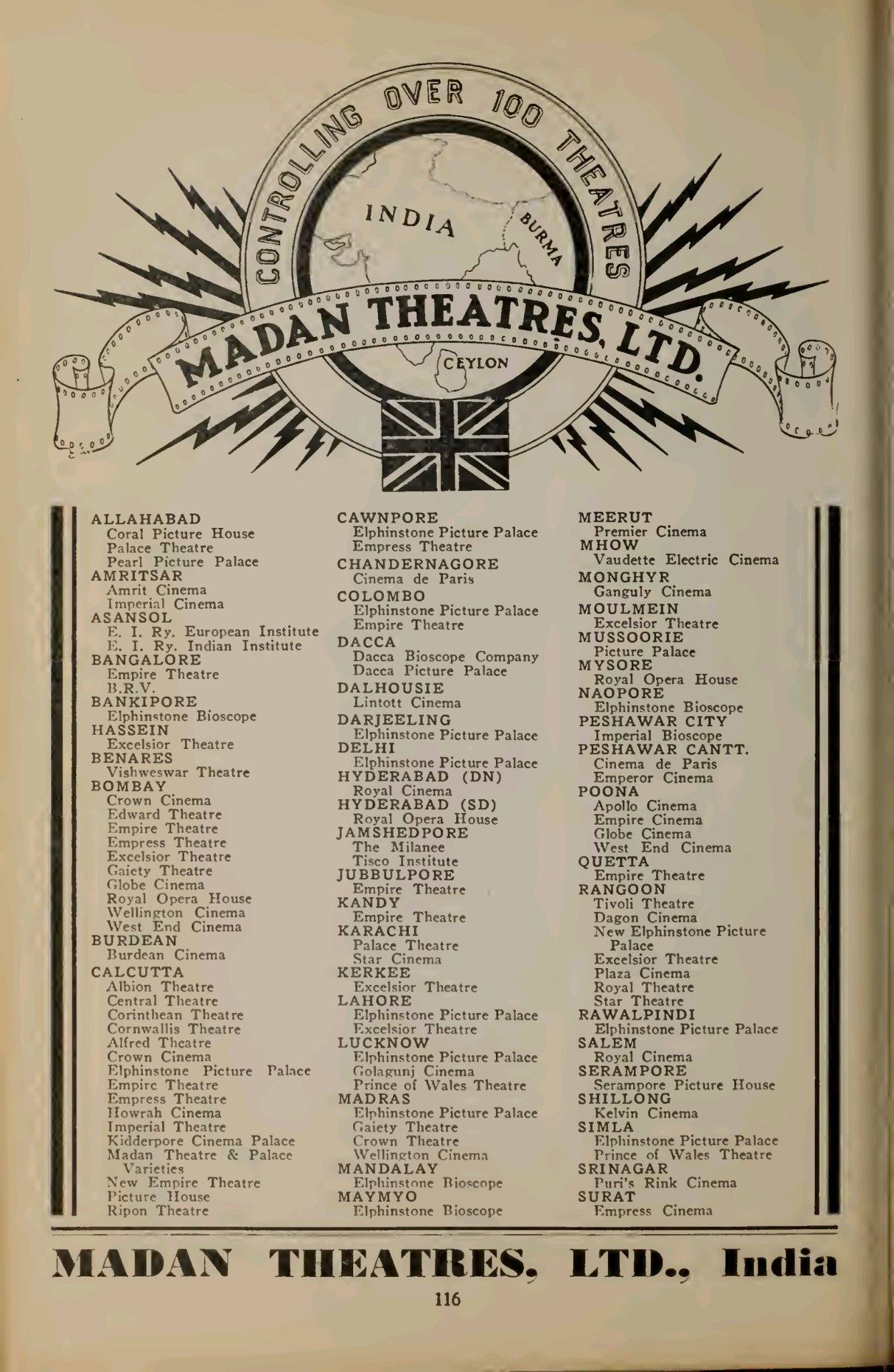 Madan TheatresBombay Circuit magazine (1929). An extract from a magazine, held in the private collection of Hemant Chaturvedi. Note the lease on the Royal Opera House in Bombay and a production from the Parsi Elphinstone Dramatic Club, where J F Madan had started, in Bombay, many years previously. The renowned actress, Patience Cooper, was also performing.