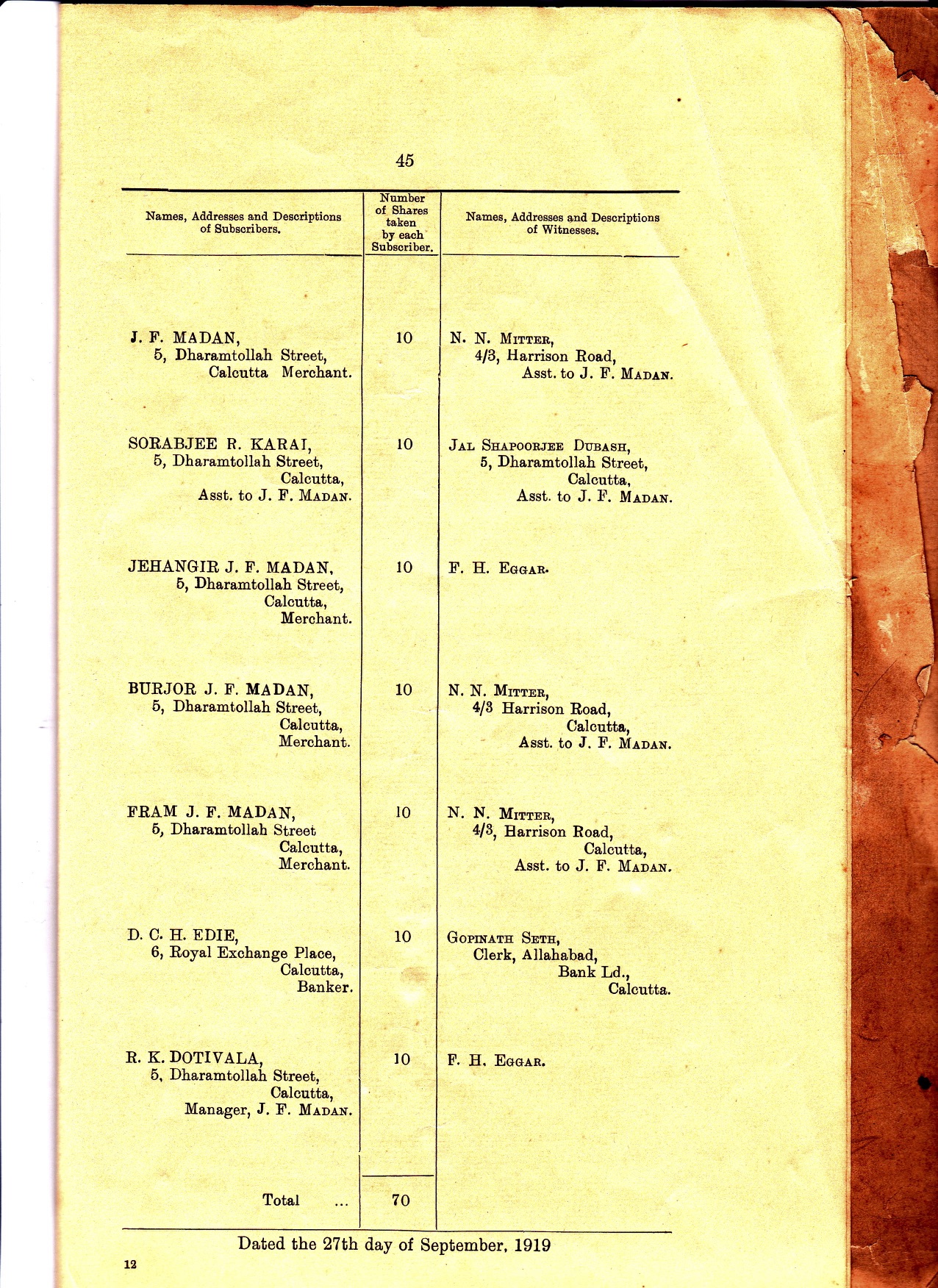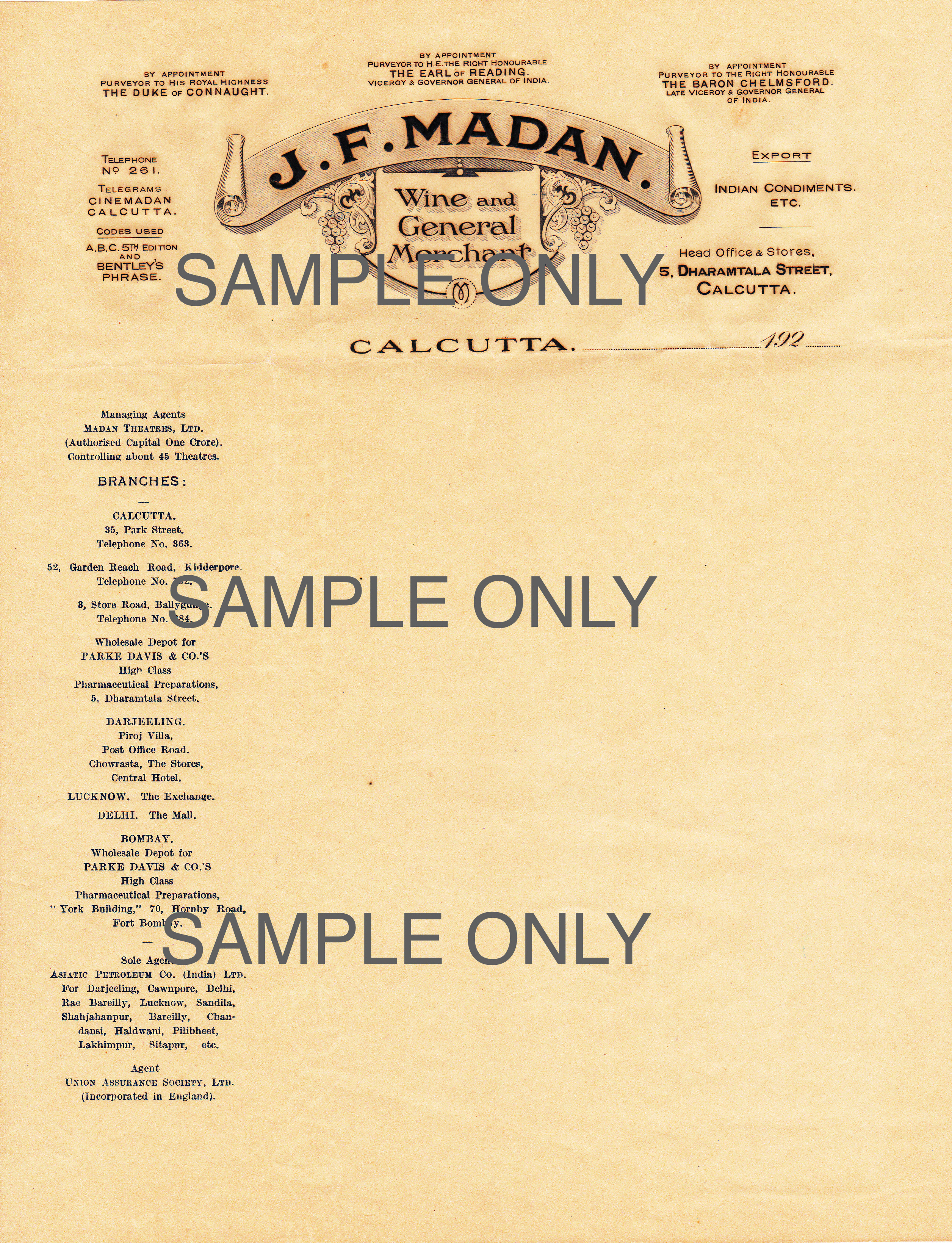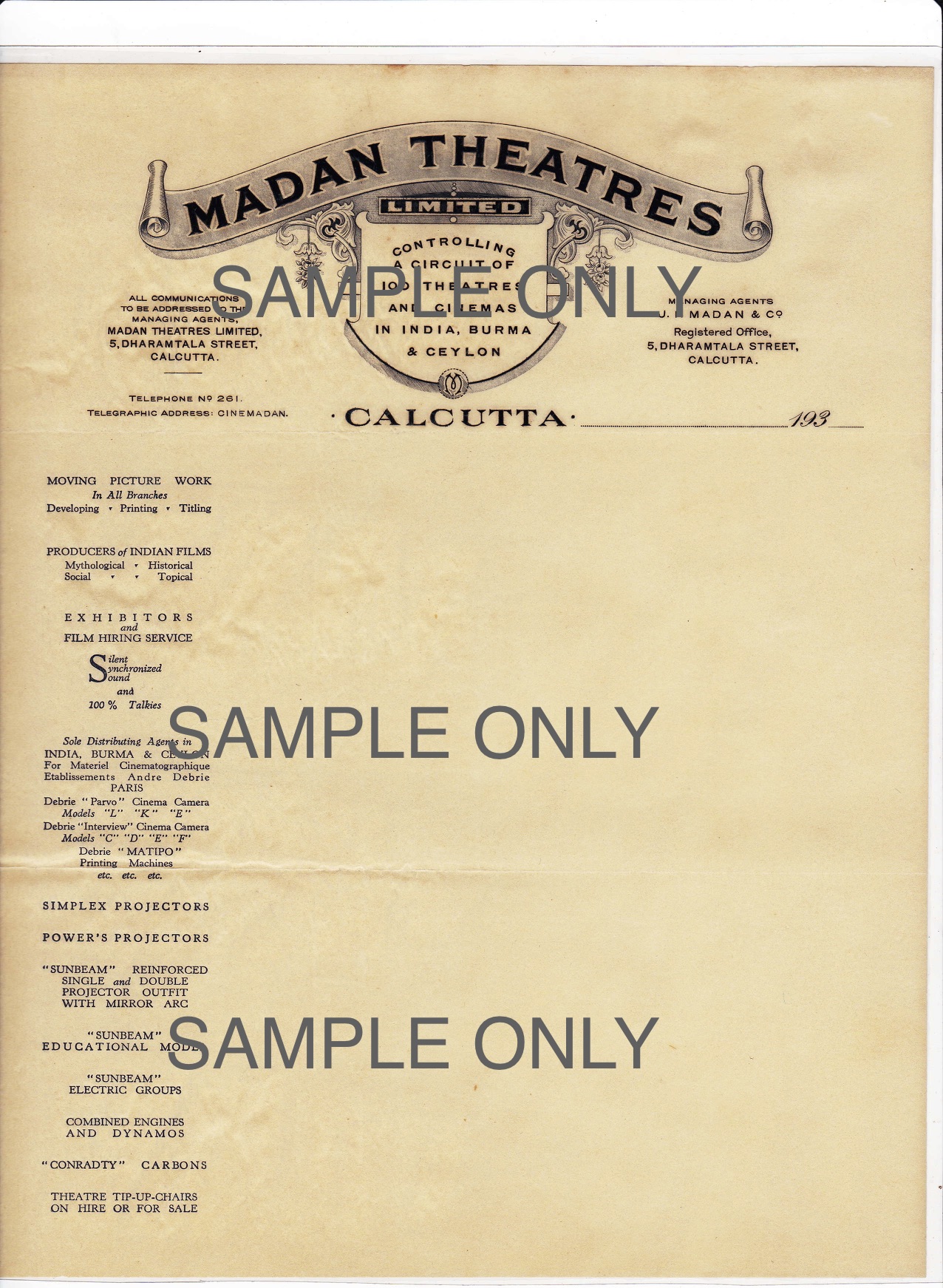 Image: 1920 share certificate for Madan Theatres Ltd. Issued on 27th March 1920 to Ala Manekji Balapuria. Ala later married Naval Jamshedji Madan, son of J F Madan. The image is taken from the original held in the private collection of Ashley Coates, great-grandson of Ala and Naval. It was scanned in 2007. Note: imprint of 1919 company stamp. Image: Courtesy: Ashley Coates – private collection.J F Madan Co letter headed paper “wine and general merchant”. Image courtesy: Gool Madan Ardeshir – private collectionMadan Theatres letter headed paper “controlling a circuit of 100 cinemas”. Image courtesy: Gool Madan Ardeshir – private collection.Madan Theatres – Registrar of Companies. Image Courtesy: Gool Madan Ardeshir. All Rights ReservedList of original directors for Madan Theatres Ltd from 1919 Memorandum of Understanding. Image Courtesy: Gool Madan Ardeshir. All Rights Reserved.Accompanying note to 1920 Madan Theatres Ltd. share certificate, shown above. 2007 scan of original. Image courtesy: Ashley Coates – private collection.Reverse side of 1920 share certificate, shown above. 2007 scan of original. Image courtesy: Ashley Coates – private collection.Exhibiting circuit, around late 1920s, early 1930s. Provenance unknown.J F Madan’s 1919 certificate. Scan origin unknown.